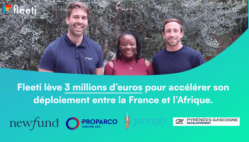 La start-up Fleeti boucle une levée de fonds seed de 3 millions d'euros auprès d’investisseurs tels que Newfund, Janngo Capital, PG Dev ou encore Proparco. Cette dernière permettra à l'entreprise de continuer son expansion internationale, notamment en Afrique, cœur de son développement avec 9 pays déjà couverts ainsi que d'accélérer la mise sur le marché de ses nouveaux produits et services.